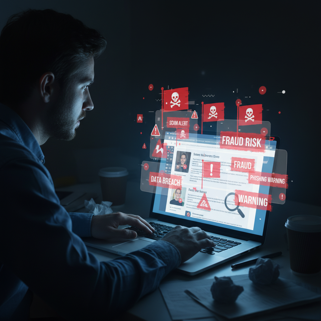 Zdjęcie: Analiza podejrzanej platformy internetowej przez użytkownika.